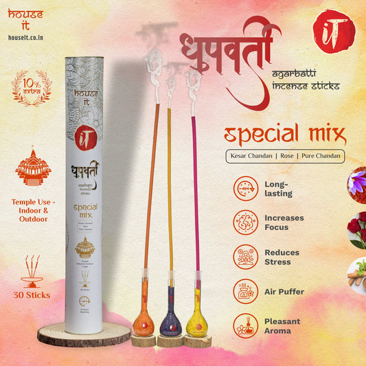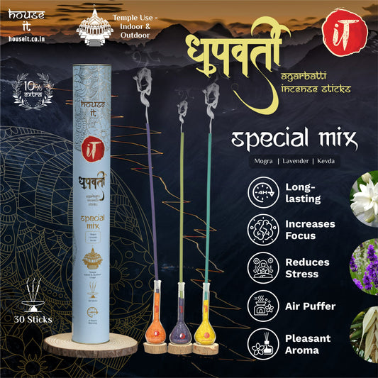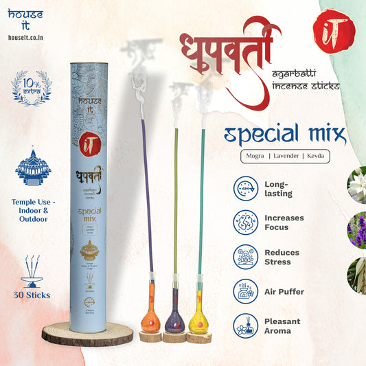 From the Ayurvedic & Herbal blends that purify and protect, to the vibrant Fruity Mix that uplifts your spirit, and the Special Temple Mix that evokes peace and devotion — every stick is crafted with care, using quality natural ingredients for a clean, lingering aroma.